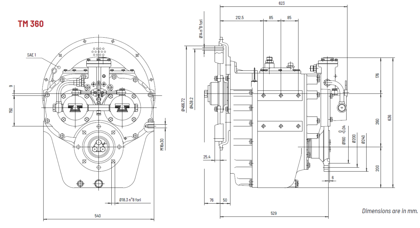 The Technodrive TM 360 marine transmission features a durable cast iron housing and hydraulically operated multi-disc clutches. The gears are manufactured from high-quality, case-hardened alloy steel.