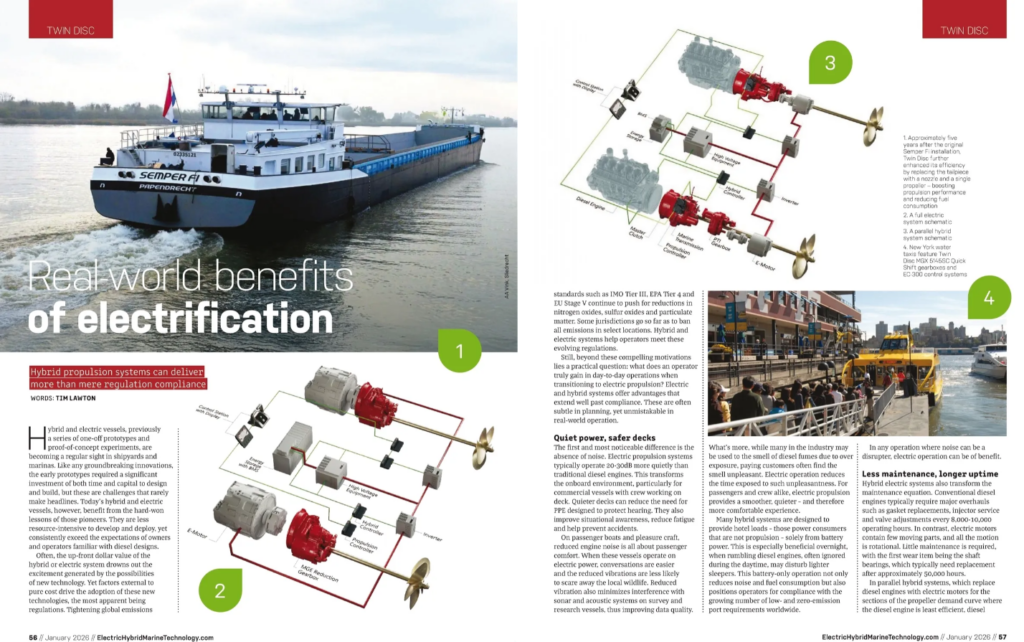 Read about the real‑world wins of going electric, from lower operating costs to cleaner waterways. Get the full story: Electric & Hybrid Marine Technology International : January 2026